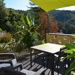 - Une véranda / salon, avec télé écran plat, donnant sur les vallées de la Volane et de l'Ardèche.